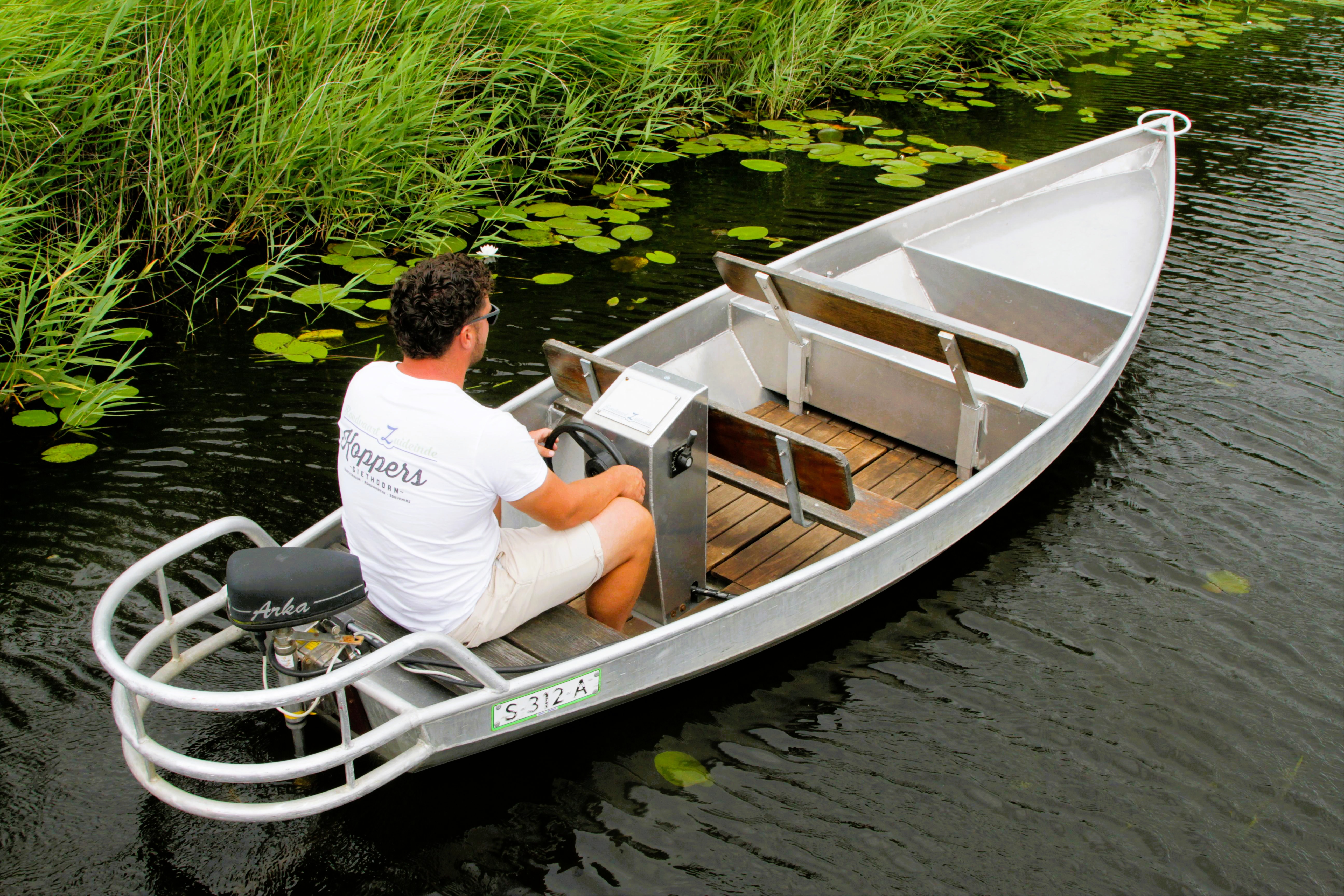 Besturing van de boot gebeurt met de hand direct aan de electrische buitenboord motor. De Fluisterboot is net zo groot als de Consoleboot maar kleiner dan de Electrosloep. Aangezien de Fluisterboot simpeler is dan de consoleboot, is de fluisterboot ook voordeliger. Mocht u door Giethoorn willen varen in de voordeeligste boot, dan is de Fluisterboot voor u de beste keuze.